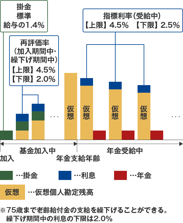 - 基金に加入期間中および繰下げ期間中の利率のこと